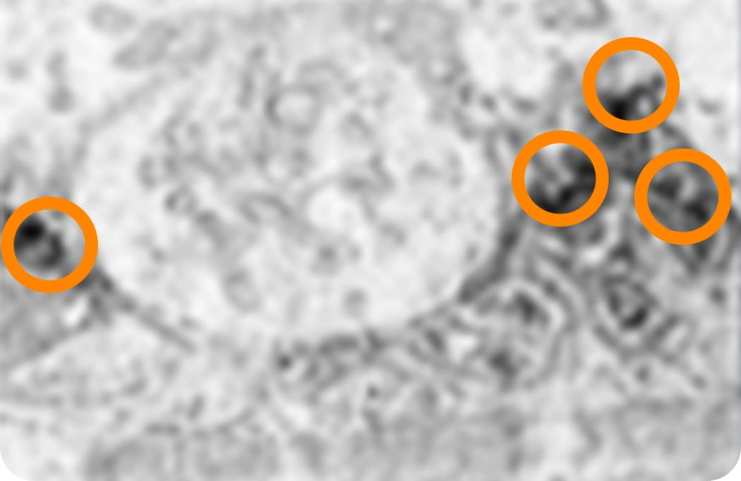 Circled areas indicate deposition of C9 (MAC component).